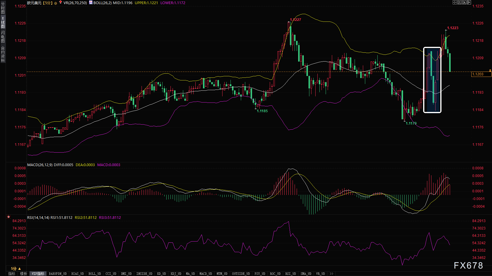 RSI指标从超卖区域反弹,目前处于51.81水平,仍有上升空间。图中白色矩形区域显示当前突破的关键价格区间,该区域成功突破后成为重要支撑。汇价现已站稳在多条移动平均线上方,进一步确认了短线上行趋势的建立。