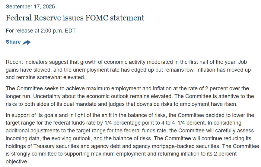 北京时间周四凌晨两点,美联储如期宣布2025年首次降息。    与市场预期一致,联邦公开市场...